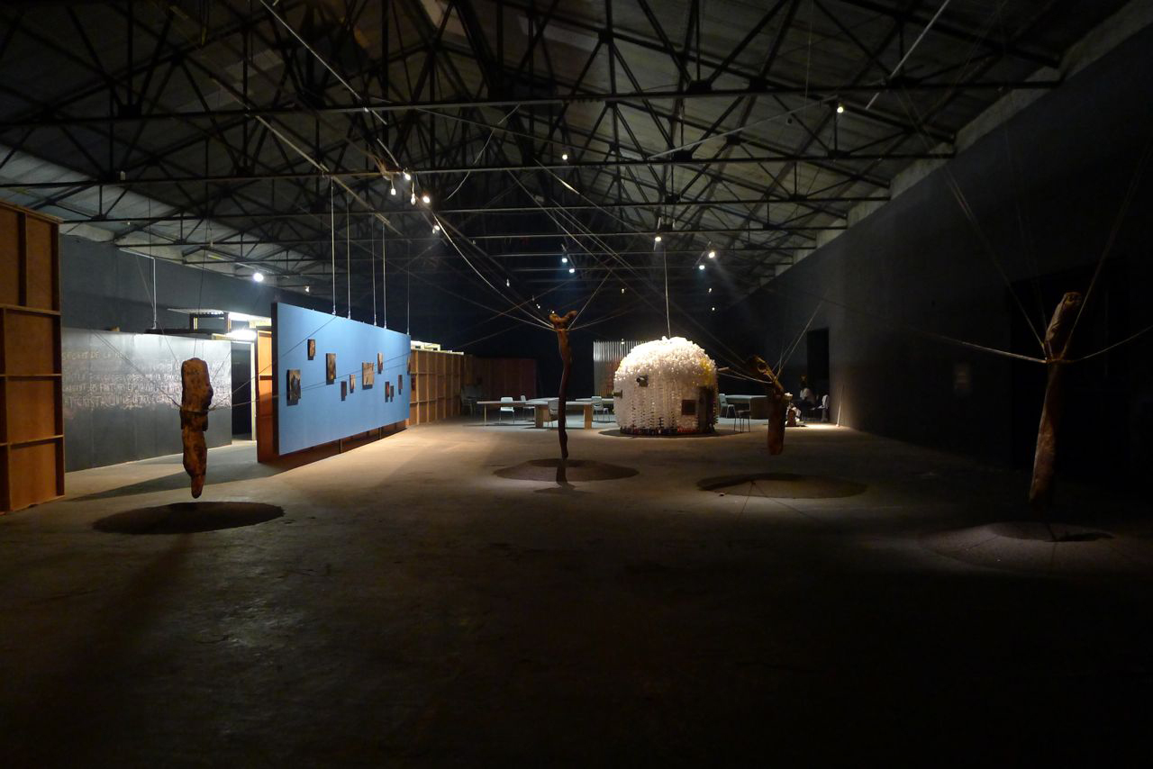 aménagement de 2 hangars de la zone portuaire, le D2 de 65X25m dans lequel ont été installées les oeuvres des artistes en résidence de la Biennale et le D5 de 25X25m dans lequel a été présentée la collection de la Biennale constituée d’oeuvres des précédentes éditions