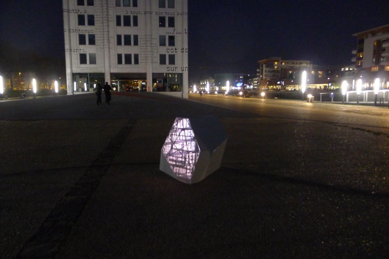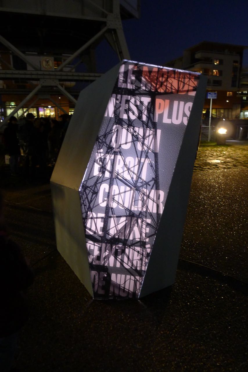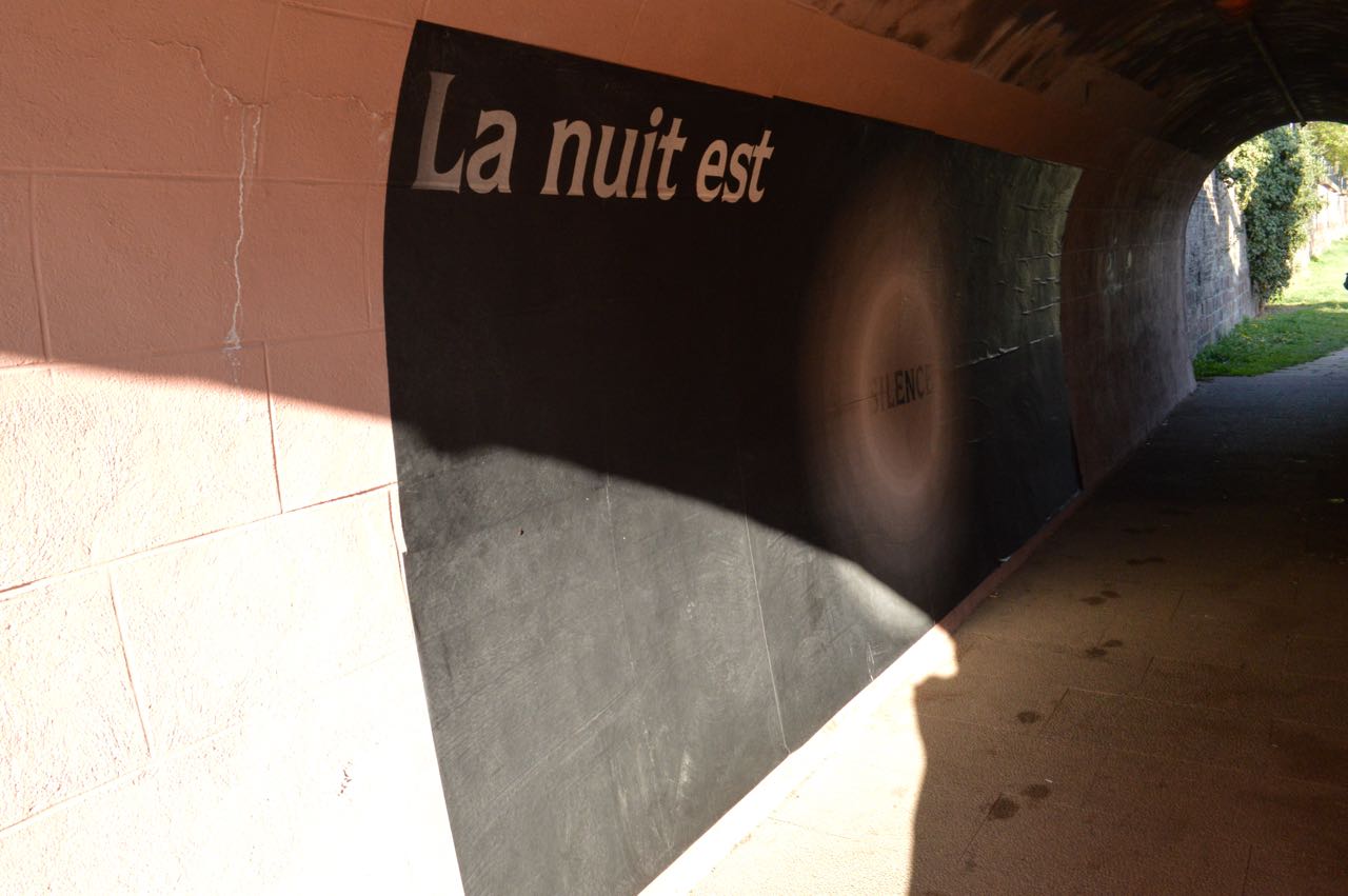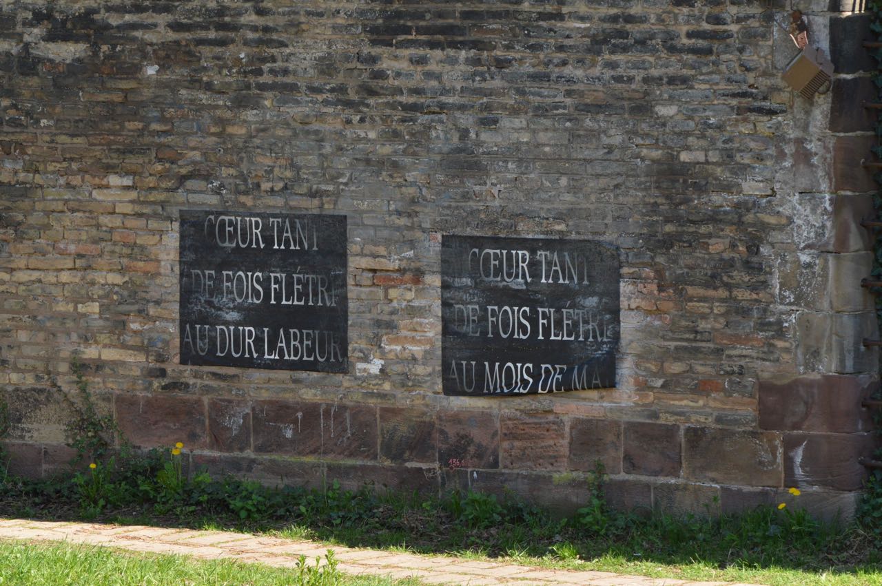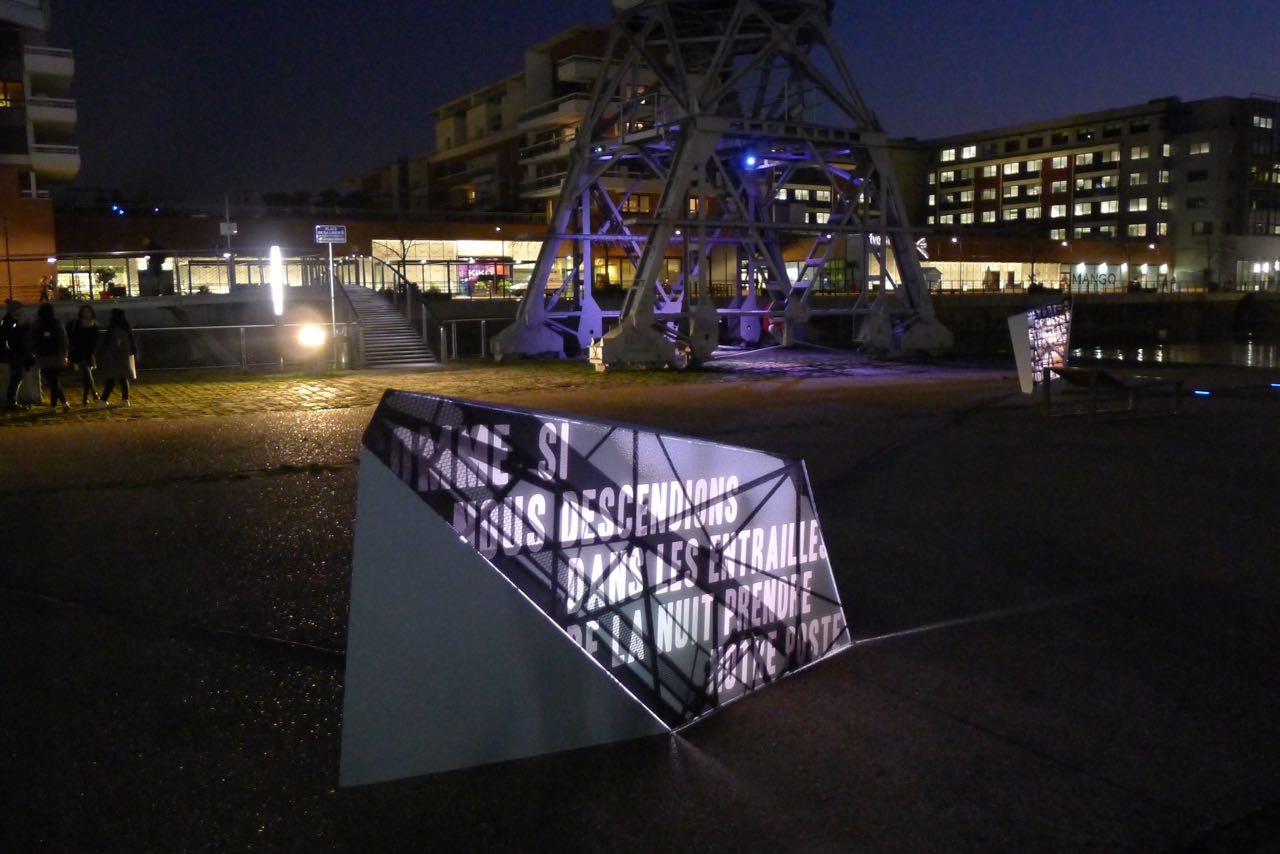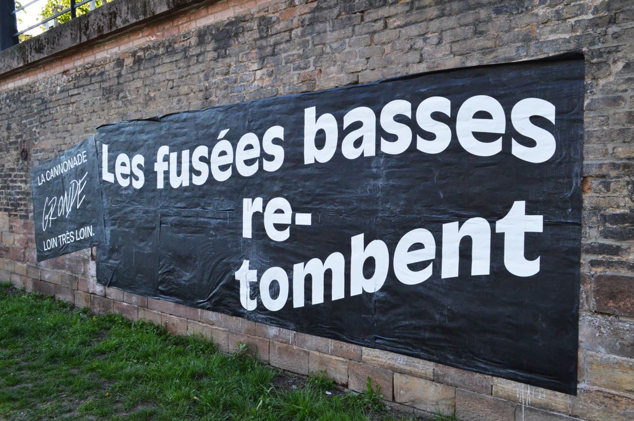 Cent ans après le début de la Grande Guerre, donner à voir les vers de Péguy, Stadler et Owen dans un autre contexte de lecture permettant de réactualiser leur force poétique. Le texte intégral de ces poèmes est ainsi mis en scène le long des deux quais de l’Ill, du tribunal aux Halles.