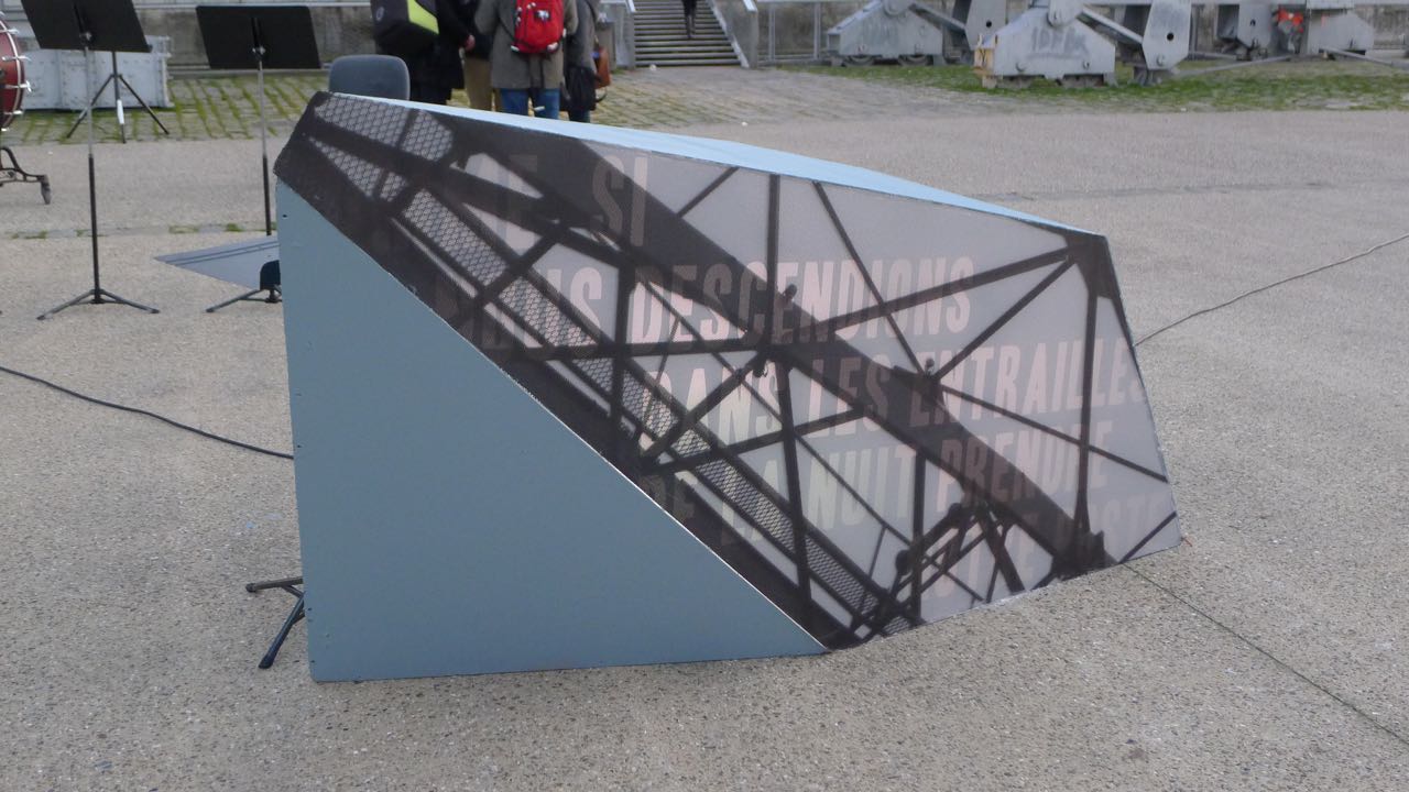 À partir d’une lecture de lettre du poète et soldat Wilfried Owen à sa mère, des performeurs activent des machines sur lesquelles défilent des cordes, métaphores de lignes de vie. Ces machines sont composées d’éléments de récupération pour symboliser la survivance en temps de guerre. La performance sera donnée en trois temps dans trois lieux différents : terrasse du Palais Rohan, Pont du Marché et rue des Dominicains.